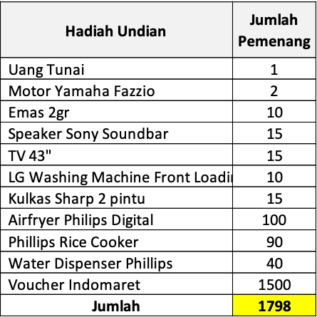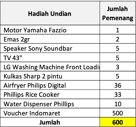 - Bentuk hadiah undian sebagai berikut :